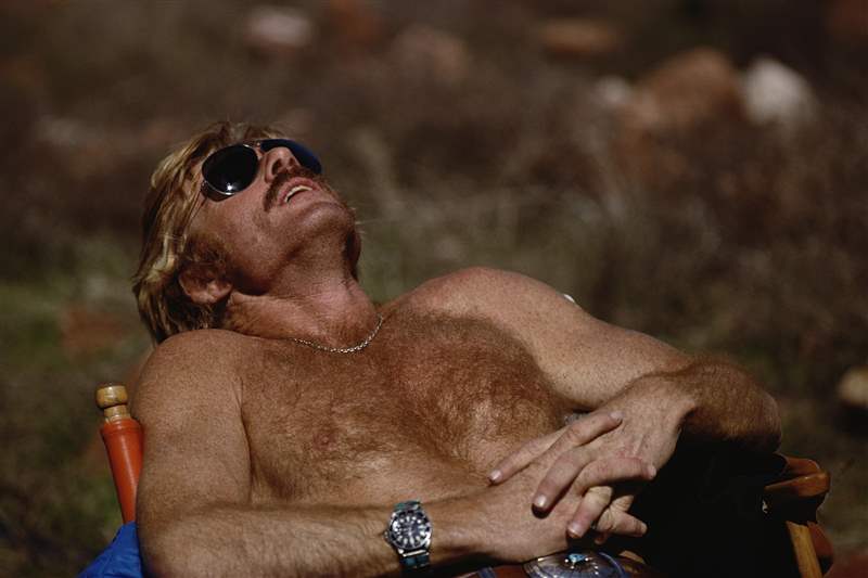 羅伯特·雷德福(ROBERT REDFORD),留著70年代的胡子和胸毛,帶著他標(biāo)志性的紅色潛艇參考1680照片:GETTY/ERNST HAAS