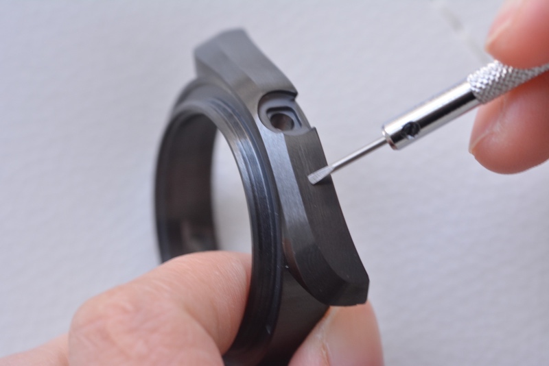 然后注塑成型:把搭配好的原材料攪拌成陶瓷漿料到機器里面注塑成型,然后需要用上百噸的液壓機壓縮成型。這道工序是非常的重要,如果原材料粉末有雜質、陶瓷漿料配方比例不對、壓縮的力度和時間長度,都可能導致粗胚在燒結過程中出現很多的沙孔、裂痕,直接為廢品。非常多的不確定因素,導致了陶瓷的不良品率是非常高的。第一次高溫燒結:陶瓷粗胚要經過1400多攝氏度熔爐內等離子高溫燒結,陶瓷會收縮硬化。第一次高溫燒結后的殼身已經變硬了,手感有點像厚重塑膠的感覺,材料的變化真的很奇妙。為了跟大家說明陶瓷殼不存在掉色的情況,特地找來了切水果用的刀子。用力的殼耳的地方,削下來了一些黑色碎末,可以看到削下來的粉末和殼身內部都已經被高溫從白色燒結成黑色的。在這里順便說一下,VSPam441的陶瓷殼跟這款“深海之黑”的陶瓷殼的硬度是比大部分常見的金屬的硬度還要高,劃痕有可能是金屬粉末沾在了陶瓷殼上,所以用濕毛巾或者細砂紙輕輕擦拭一下就好了。