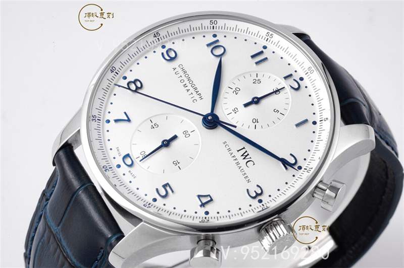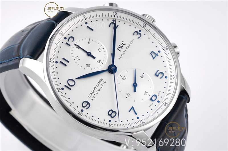 截止到目前位置,zf萬國葡計表款已經升級到了v2終極版本,保證了外觀尺寸以及細節在外觀上無限接近正品,同時也穩定了其同款市場第一的地位。葡計被大家公認顏值高的一個地方就在于它的刻度和表針都采用了藍色處理,配上白底表盤,可謂“爽潔儒雅”。連藍寶石表鏡也做了藍色防眩光鍍膜處理,晃動手腕可以看見若隱若現的藍色光影。更漂亮的地方在于,刻度和指針在進行藍色處理之前其實都經過了鏡面拋光。所以在不同角度、光線下,刻度和指針會因為反光而帶來藍色的深淺變化。時而是沉穩的深藍色,藍到發黑,時而又變成了蔚藍,明亮通透。