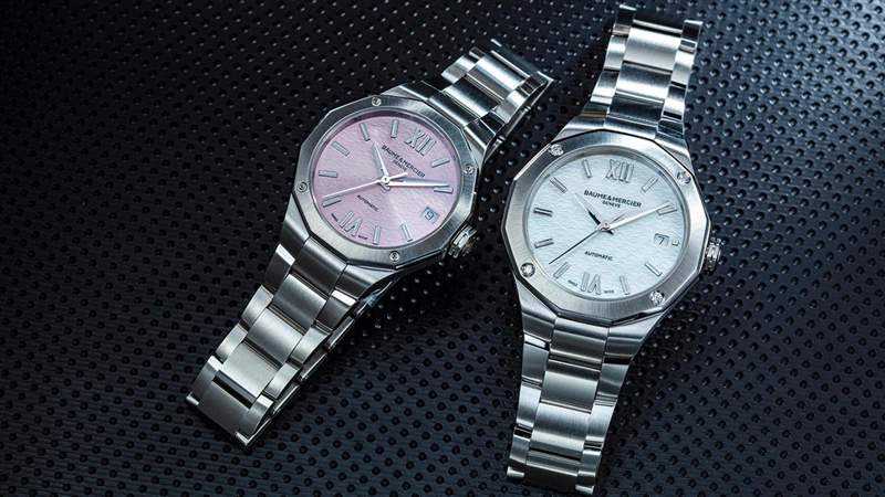 另外兩款33mm的Riviera,則是平實的在面盤顏色上做變化,一款是粉紅色緞面表盤、另一枚的面盤則是白色珍珠母貝,兩款都搭載自動上鏈機芯,是一般女性大多能接受的典雅風格。