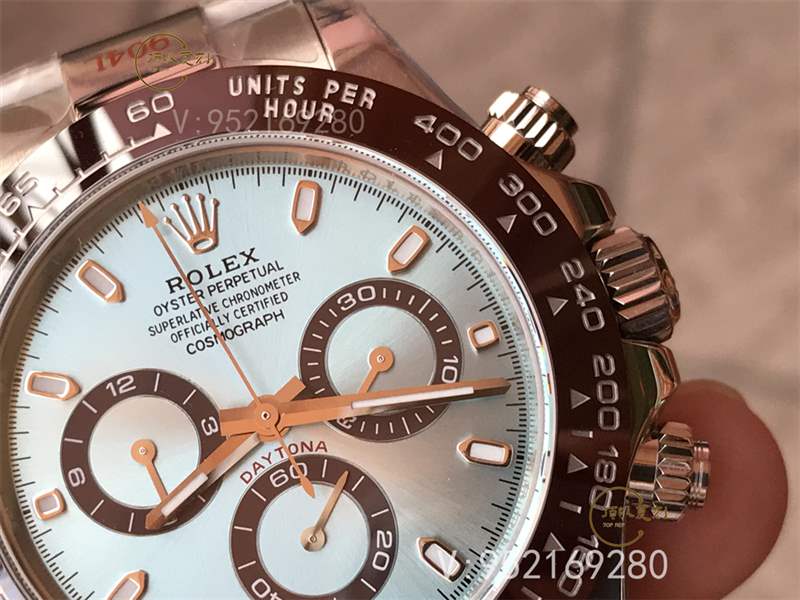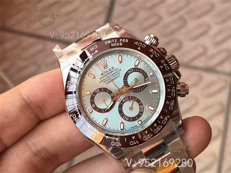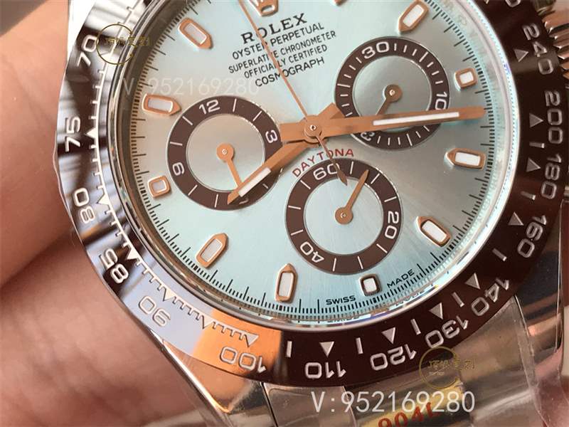 這款勞力士冰藍(lán)迪在市場(chǎng)上賣的非常火,主要還是它冰藍(lán)色的盤面和票棕色的表圈,十分吸人眼球,正品價(jià)格在60w左右。