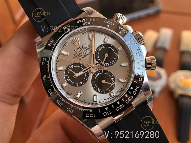 勞力士迪通拿灰盤白金款式,也被稱為灰盤熊貓迪,這款表是迪通拿當(dāng)中最熱銷的款式之一,白金的外觀,加上灰色的盤面兩者撞色,讓表友十分青睞,一表難求,和熊貓迪銷量比肩,在復(fù)刻市場上也是各大廠家必爭的一個(gè)地方,但是能夠真正做的到一比一還原復(fù)刻的還真沒有幾個(gè),n廠是當(dāng)中最出色的,因?yàn)橥庥^白金材質(zhì)沒辦法實(shí)現(xiàn),只能用904l鋼代替,重量不一樣,但是機(jī)芯n廠4130確實(shí)是最接近正品的版本,所以重量上已經(jīng)不重要了,畢竟戴在自己手上也不可能讓別人去稱重對比吧!接上一篇N廠勞力士冰藍(lán)迪迪通拿升級到v3版復(fù)刻做工怎么樣,這篇是對于N廠勞力士灰盤熊貓迪通拿M116519復(fù)刻表做工怎么樣,內(nèi)附實(shí)拍圖!
