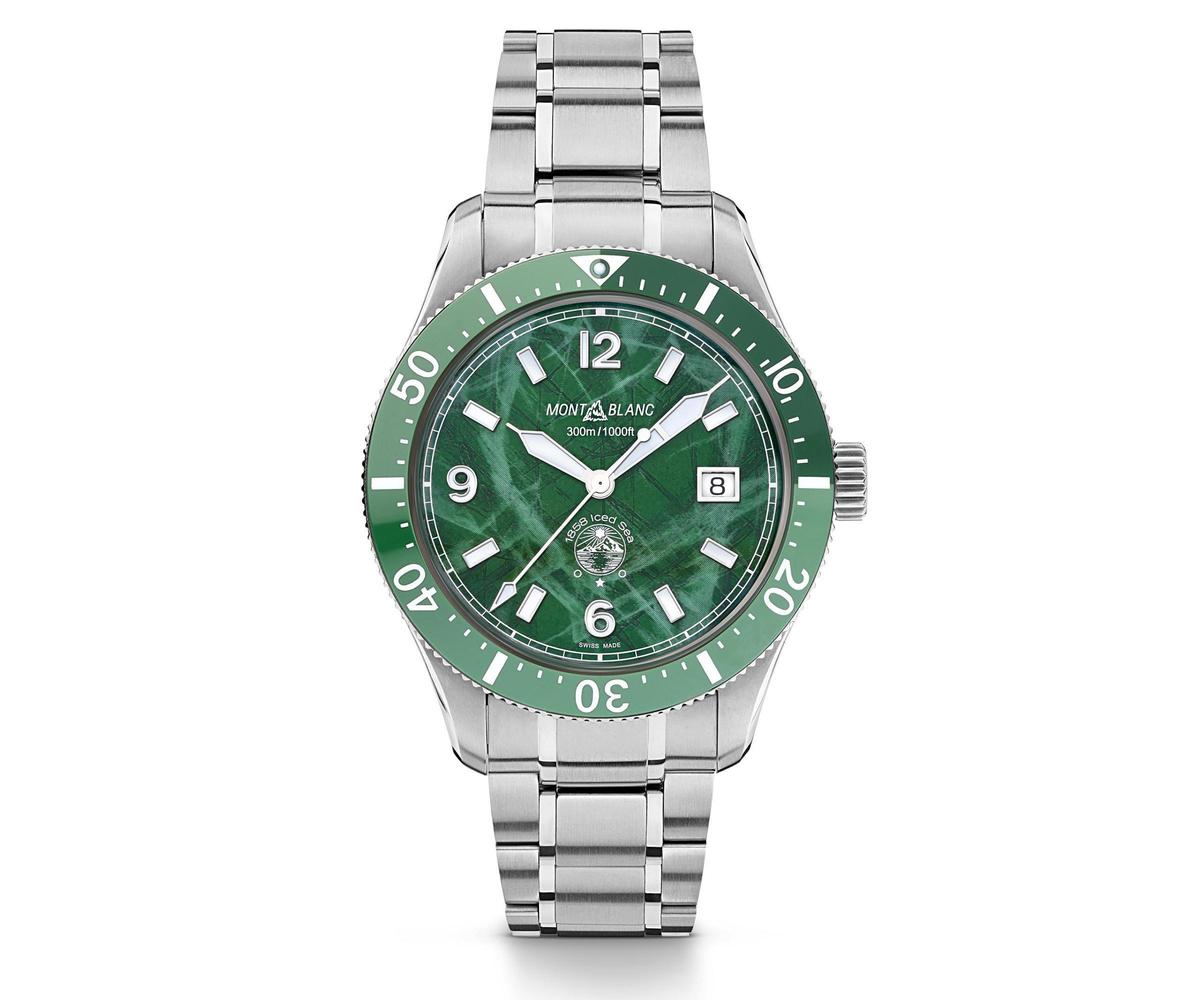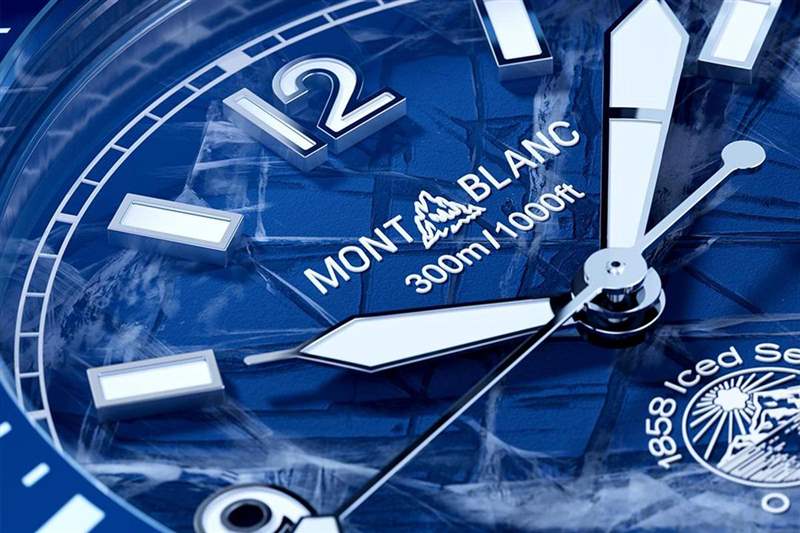 萬寶龍在2018年隨著1858 Geosphere腕表的問世,開啟一波「山岳三部曲」,藉由主題的設定與顏色的運用,來強化「冒險」的形象,而去年這項延伸到了「沙漠」,因此當年的1858 Geosphere改以沙色來呈現(xiàn)。今年相同的故事仍持續(xù)上演,萬寶龍選擇來到白朗峰上的冰川湖為主題,但這次主角并非是1858 Geosphere,而是全新的1858 Iced Sea潛水表。