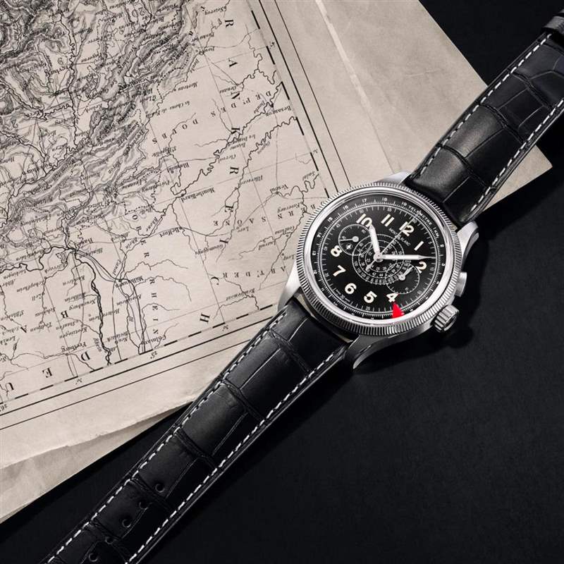 萬寶龍1858系列單按把計時腕表Red Arrow限量款,是以1927年與1939年兩款Minerva古董計時碼表為靈感,其中最特別之處是它帶有凹槽的雙向旋轉表圈,可以連動上頭的紅色箭頭,藉由自訂箭頭的位置,配合計時碼表功能,達到像是倒數(shù)計時的作用。至于面盤上螺旋形的測距儀刻度、米色的夜光涂層,這些都與過去的古董表相似。