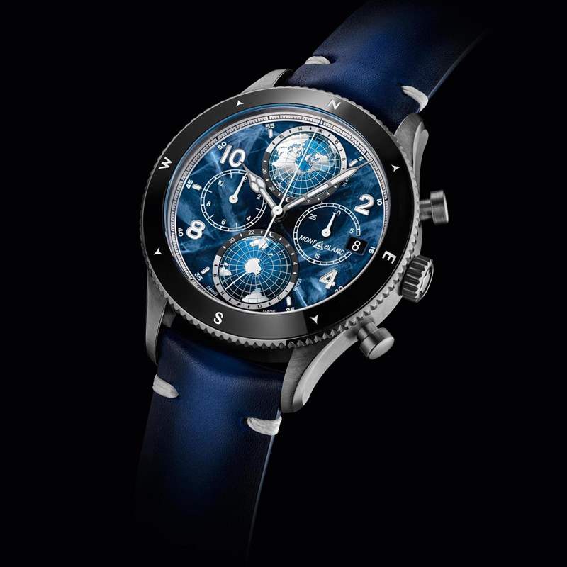 萬寶龍1858系列Geosphere世界時間計時零氧腕表限量款,同樣有特殊面盤裝飾,而且它的機芯還是采「無氧」方式制造,能消彌溫度劇烈變動下所產生的霧氣。