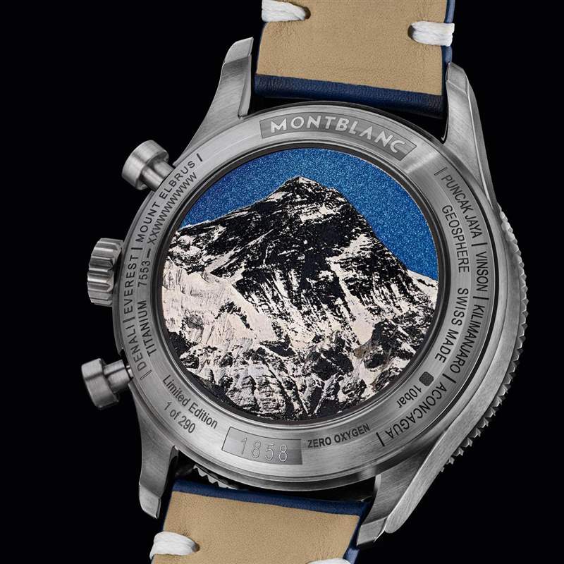 萬寶龍運用獨特的雷射雕刻技術,在后底蓋刻上3D珠穆朗瑪峰,顏色與紋理效果都非常逼真。