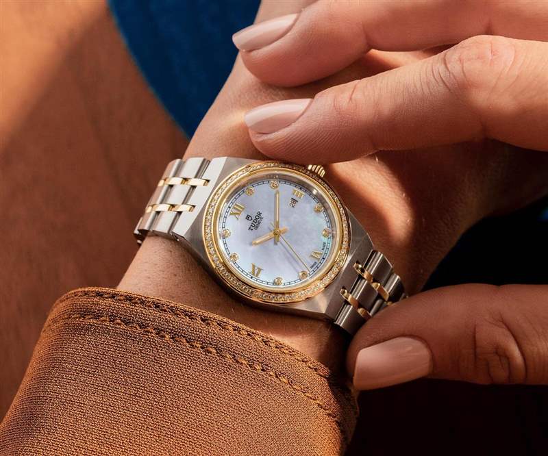 TUDOR Royal今年新增鑲鉆表圈搭配珍珠母貝面盤的版本。