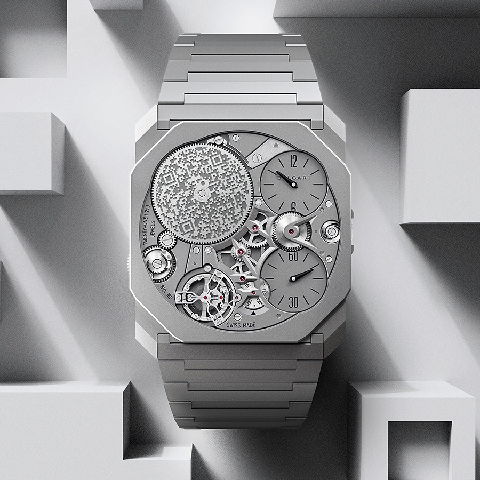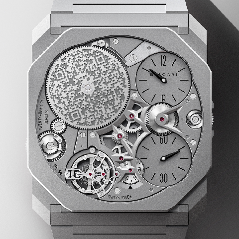 在Octo Finissimo Ultra面盤上可以看到發條盒的地方有QR Code的鐫刻,透過QR Code的掃描可以看到表款相關的訪談、制作工序、和機芯虛擬3D導覽等等,讓表主可以更加了解自己買的手表是什么來歷。另外寶格麗也與時俱進搭上了NFT的順風車,買到這十只限量版的Octo Finissimo Ultra藏家,都可以獲得專屬的NFT藝術作品,除了再度用超薄打破紀錄之外,也為品牌在NFT領域先進行了一場暖身。
