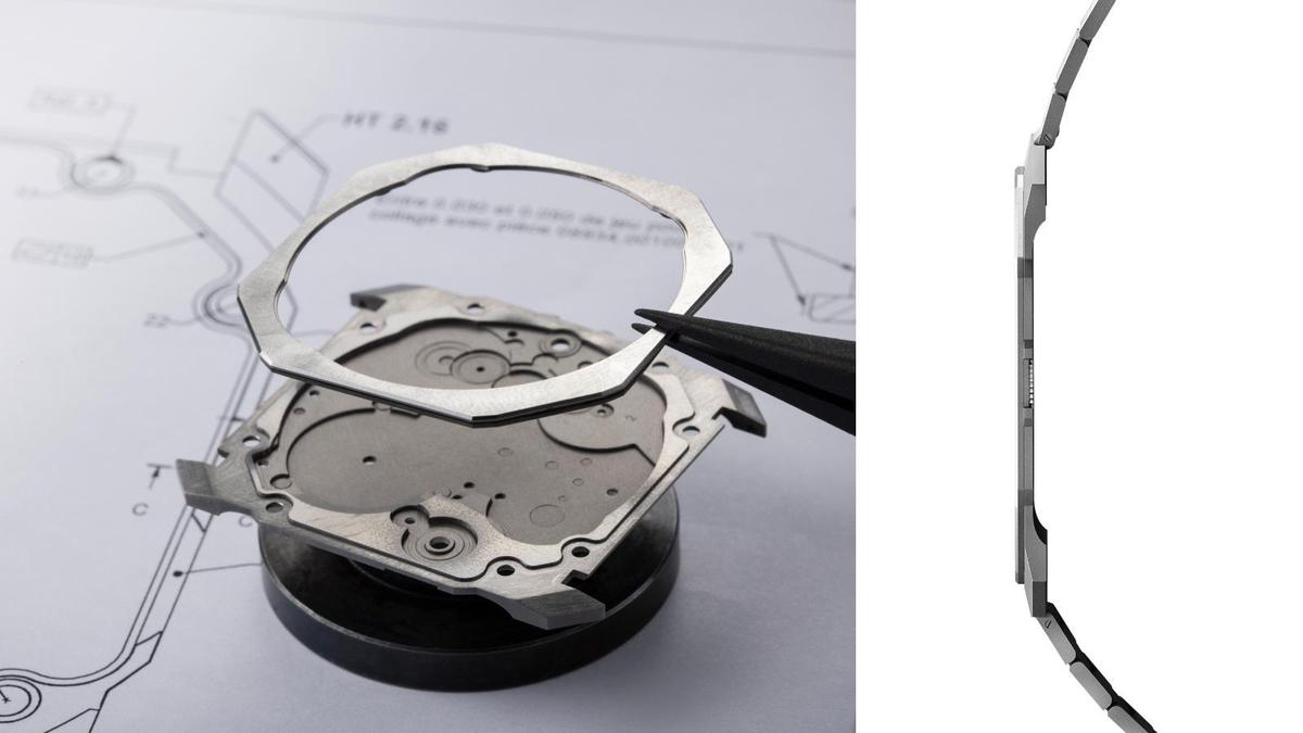 寶格麗產品設計執行總監Fabrizio Buonamassa Stigliani之前也受訪時提過,寶格麗很在意鏈帶的設計,因為那是手表最大面積貼近皮膚的部分,所以一定要講求舒適感才行。為了更薄這款Octo Finissimo Ultra的鏈帶也經過重新設計,厚度只有原版Octo Finissimo表鏈的一半,因此折疊扣也要跟著變動。再來要解決的問題是整體的硬度,畢竟表殼做得這么薄,組件硬度一定要跟著強化,所以表殼中層、表圈、表耳等等都用了碳化鎢強化性能。
