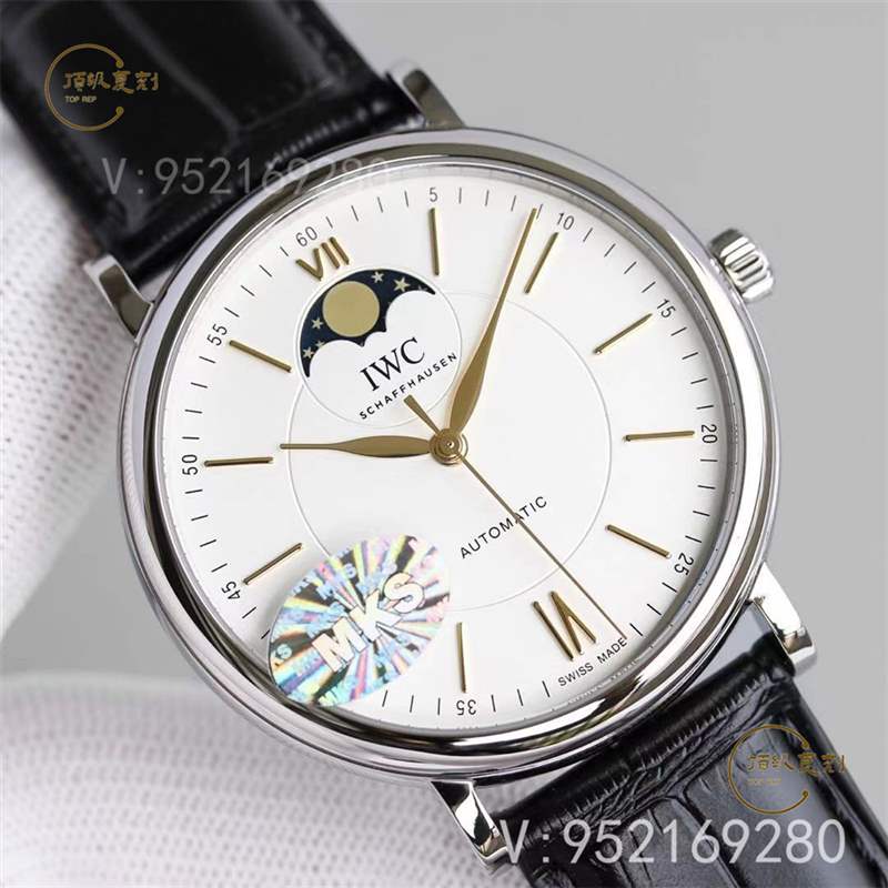 MKS廠萬國柏濤菲諾月相腕表直徑40毫米,經典的商務、休閑兩用款,高精度打磨拋光鋼殼殼體,非常的光滑細膩。