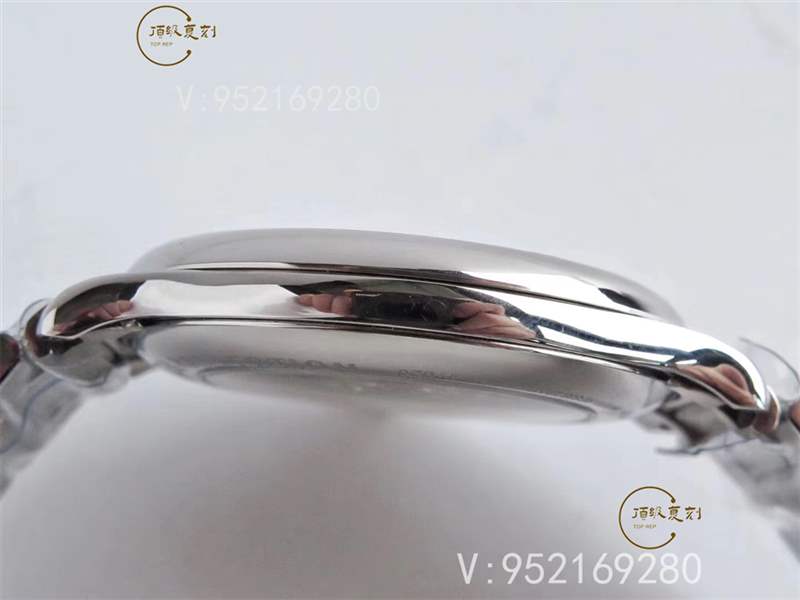 此次重新矯正表盤,盤面顏色以及麥穗壓痕清晰整潔。整體的效果并不下于正品。工廠宣稱整表配件支持和正品完美互換,這個我覺得還是有點夸張,把頭,表帶,表扣是可以做到與真表互換。圓形的銀白色表盤,以麥粒”飾紋裝飾。紋路清晰,干凈整潔;燒鋼藍指針,低沉的藍色,針體飽實與白色盤面交相輝映;所有的盤面細節入眼都是精致。