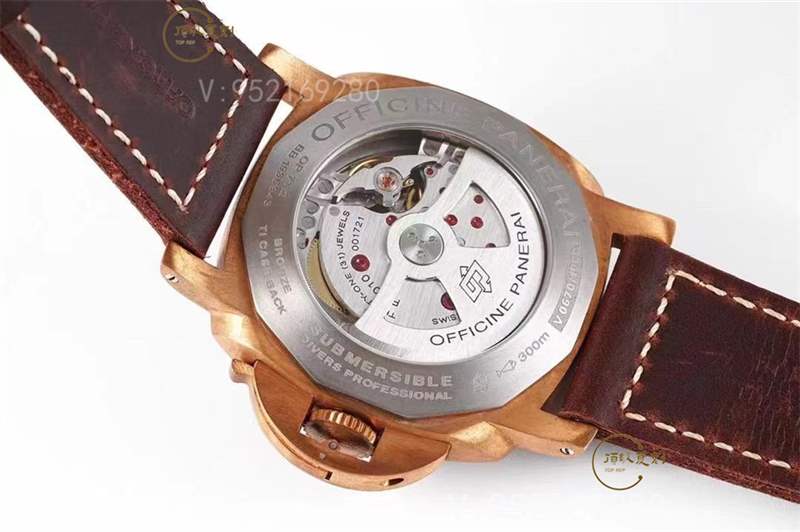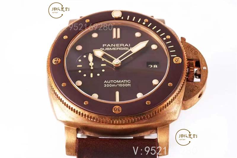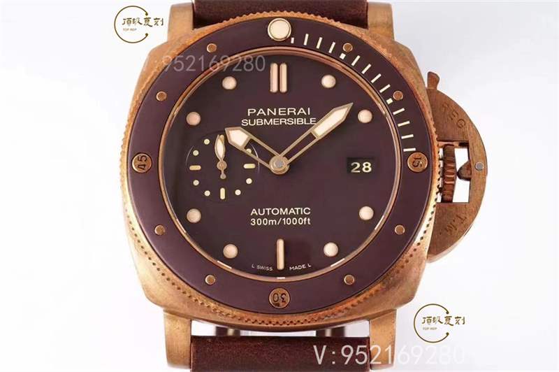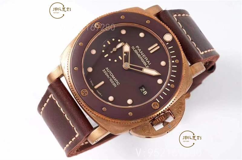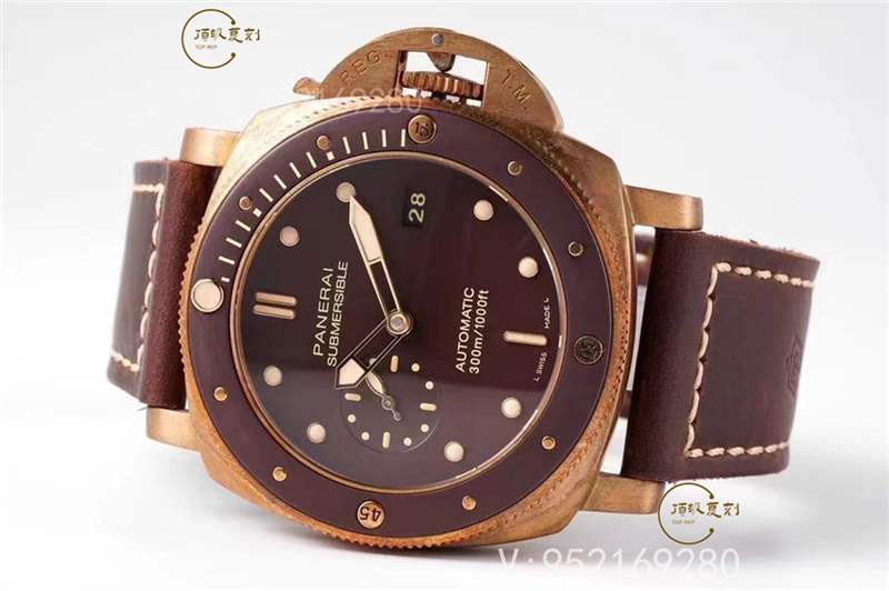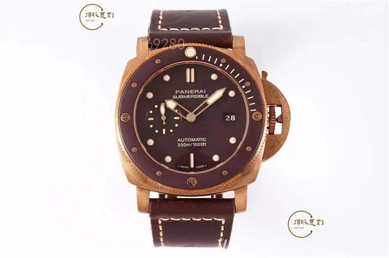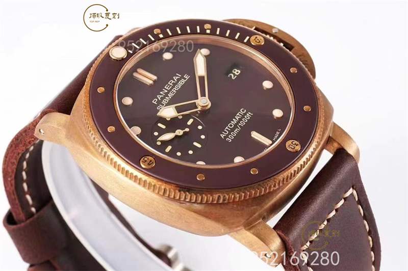 ZF廠根據正品一比一復刻,還原極具辨識性大表盤,與青銅相呼應的棕色表盤深邃沉穩,刻度釘精致圓潤,填充超強夜光,3字位簡潔的日歷窗口對應9字位沛納海經典的小秒盤。