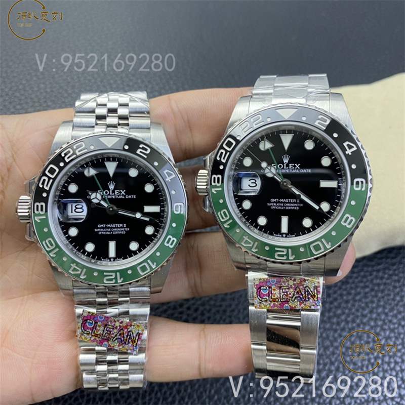 大家好,我是zslhs小編,2022年勞力士推出了一款全新的格林尼治二代腕表,黑綠配色被稱為雪碧圈,再加上把頭左側設計,也被稱為左撇子,別具一格,令人耳目一新,推出之后就成為了22年爆款產品,在剛推出的時候,還有表友問我什么時候能夠有復刻版本,不過當時只有小廠還有v9廠,做工不算頂級,后面c廠成功購入正品復刻之后,才有了現在最頂級的版本,做工十分優秀,還原度超高,今天小編給大家介紹C廠(Clean廠)勞力士格林尼治雪碧黑綠圈左撇子復刻表M126720VTNR對比正品怎么樣!