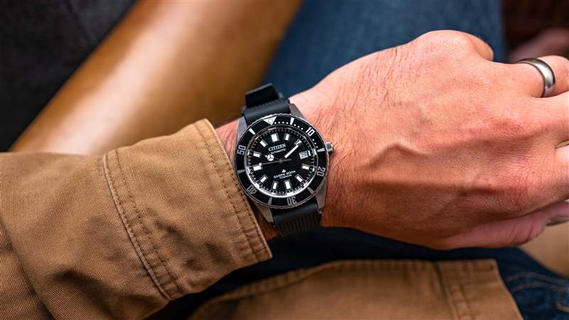 一旦我把這個Citizen戴在我的手腕上,外觀與表殼的超現(xiàn)實輕盈相結合,提供了手腕的存在感和耐磨性,掩蓋了1970年代誕生的任何東西。表殼寬41毫米,凹陷式拱形藍寶石水晶玻璃表鏡頂部厚度12.2毫米,表耳間距為48.5毫米。這些是通常可穿戴潛水手表的正常比例,但得到這個,在橡膠表帶上,挑戰(zhàn)潛水員僅重70克。作為參考,我的精工SPB143的尺寸手鐲重82克。只是手鐲。