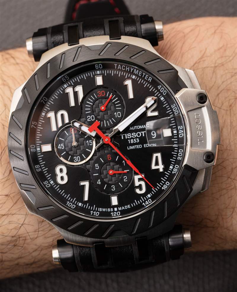 22 毫米寬的表帶和整體寬大的比例讓 T-Race 自動計時碼表感覺很大,但可移動的表耳和高品質的橡膠表帶使其佩戴舒適,不會在手腕上漂浮。表殼本身防水深度達 100 米,由鋼制成,表殼的某些部分(例如中間)帶有啞光黑色 PVD ??涂層。表冠和按鈕周圍的細節很好,整體貼合度和光潔度都很好。