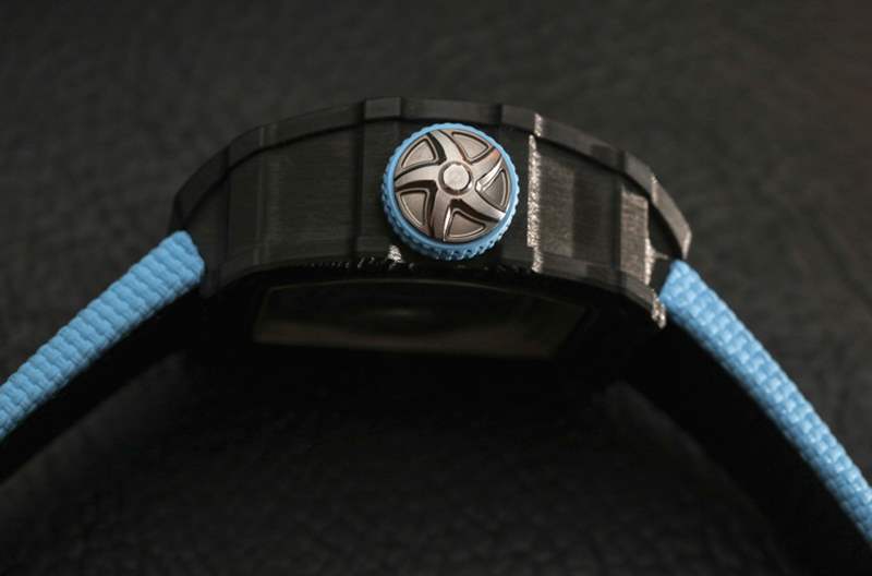 從手腕上欣賞手表也不難。Richard Mille 再次使用 TPT 碳作為表殼材料,這是一種層狀的碳,經久耐用且非常好看。RM53-01 表殼寬 44.5 毫米,高 49.94 毫米(凸耳到凸耳)和 16.15 毫米厚(防水深度達 50m)。復雜的表殼設計與有趣的表帶系統(具有有效但具有諷刺意味的非豪華 Velcro 閉合系統)相結合,使框架能夠展示對稱和視覺上引人入勝的內部運動。