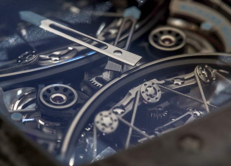 第一種方法是結合他們的運動懸掛電纜系統的一個版本。早期的網球運動員拉斐爾·納達爾(Rafael Nadal)在理查德·米勒(Richard Mille)手表中引入了機芯懸掛系統,該系統在 10 個滑輪上使用一系列兩條細小的金屬電纜,并由四個“懸掛器”緊緊固定,以懸掛大部分以鈦金屬為基礎的手動上鏈陀飛輪機芯。因此,電纜可以吸收手表在被撞到時可能遭受的大量震動。電纜系統吸收了大量危險的振動,而不是物理沖擊進入運動并可能破壞它。看到這些微小的電纜有多酷,這本身就是另一種樂趣。