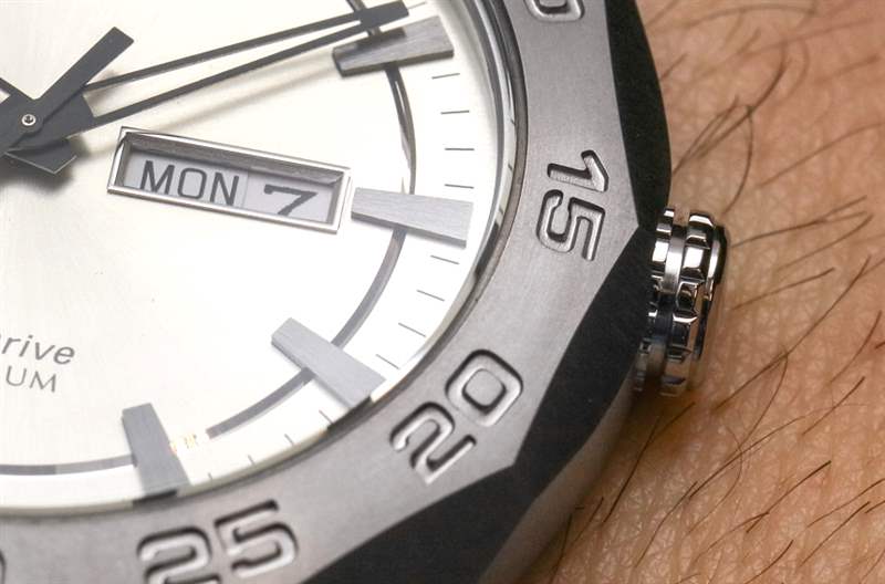 對我來說,這個表殼設計方向始于幾年前價格更高的Citizen Eco-Drive Satellite Wave F100 手表系列(在此處查看)。在那里,您看到西鐵城探索了這種美妙的現代風格,在我看來,它很好地展示了品牌的實力。F100 也是鈦合金的,但即使價格更貴,我也不認為它是超級鈦合金。因此,Citizen Eco-Drive Super Titanium AW0060 系列的價值是非常真實的。再次提醒您,Super Titanium 的重點在于其耐刮擦性。普通鈦既堅固又輕巧,但很容易劃傷。Super Titanium 經過涂層處理,其抗劃傷性(表面強度)是普通鈦的五倍。