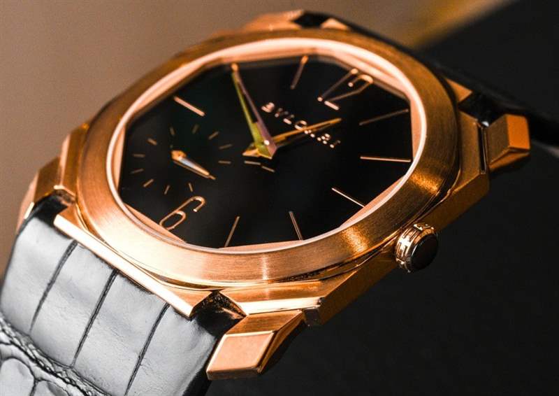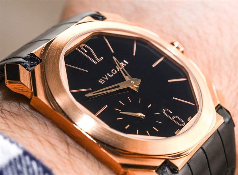寶格麗Octo Finissimo真的很薄。稍后我將介紹機芯,但寶格麗 Octo Finissimo 的整個表殼厚度僅為 5 毫米,感覺就像是表帶的延續。我應該提到的是,目前可用的三個版本的表殼厚度略有不同。寶格麗又出一款鑲鉆表圈的鉑金款(型號102373 BGO40PDLXT),厚度為5.75mm(可以理解,因為鑲鉆增加了厚度),18k玫瑰金款比5mm厚的鉑金款厚了一根頭發絲,厚度為 5.15 毫米 – 您甚至不會注意到尺寸差異。廣告留言廣告信息結束