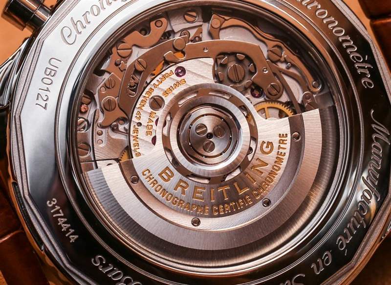 百年靈 01 型機(jī)芯是一款非常堅(jiān)固的機(jī)芯,好消息是您可以通過(guò)藍(lán)寶石水晶底蓋窗口看到它。正如你們?cè)S多人所知,對(duì)于百年靈來(lái)說(shuō),配備展覽底蓋的手表并不常見(jiàn)。通常,百年靈手表的底蓋雖然是實(shí)心金屬,但制作精良。01 以 4 赫茲(28,800 次/小時(shí))的頻率運(yùn)行,具有最長(zhǎng) 70 小時(shí)的動(dòng)力儲(chǔ)存,并提供帶日期的時(shí)間和 12 小時(shí)計(jì)時(shí)碼表。這絕對(duì)是一款工業(yè)化機(jī)芯,但它仍然具有豐富的內(nèi)涵,就像百年靈在大多數(shù)鏡面表殼上所做的拋光一樣。