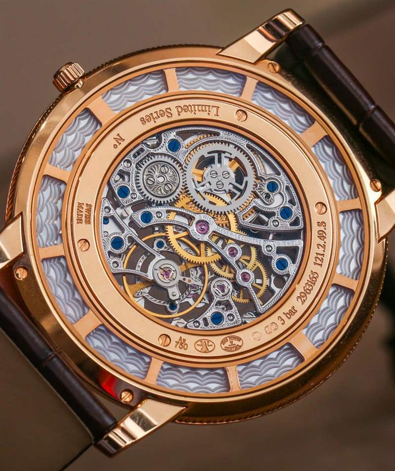 關于鏤空的一個注意事項——這可能只是這些原型模型的一些東西——雖然大多數運動表面都很好地鏤空,但一些后部部件根本沒有真正完成,或者完成得不是很好。我明白,為了讓雕刻的機芯“正面”元素看起來更突出,它們應該落在對比鮮明的背景上。話雖如此,似乎有些機芯零件是直接從機器中取出來的,很少受到關注,也許也沒有經過手工修飾。通常,對于價格較低的手表來說這沒什么大不了的,但在這個水平上,我希望機芯中的所有部件——可見或不可見——都是完全手工完成的,并盡可能具有吸引力。同樣,這可能只是原型的問題(確實發生了)。
