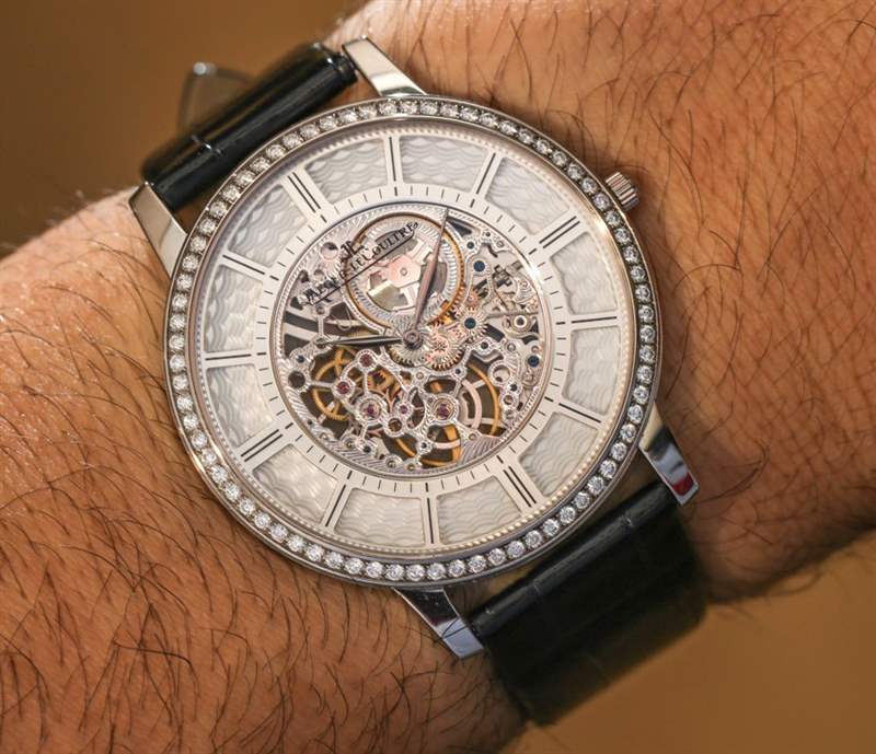 能在香港Watches & Wonders戴上Jaeger-LeCoultre Master Ultra Thin Squelette,鉆石的裝飾感覺再合適不過了,感覺很有必要。話雖如此,如果我在美國手腕上有這個小數字,我仍然會欣賞這些鉆石,但我可能更喜歡更薄、未鑲嵌的型號。