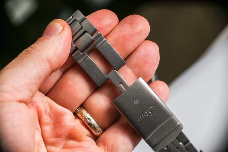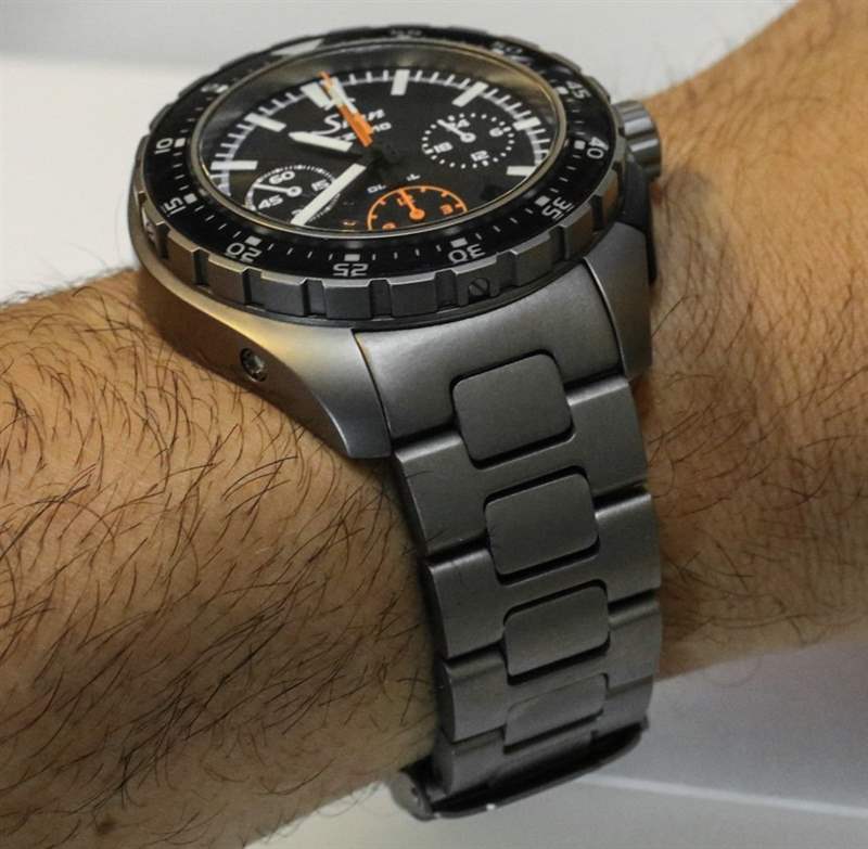 當 Sinn 首次推出 Tegimented 鈦時,我真的很興奮,因為與鋼相比,通常情況下,鈦更容易劃傷。雖然 Tegimented 鈦不如陶瓷或藍寶石那么硬,但它比普通成品鈦有了很大改進,直到現在我還沒有在 EZM 10 的表殼或表鏈上看到任何劃痕。我不能說沒有有點喜歡它,但這個過程和它的耐用性給我留下了深刻的印象。甚至觸摸 Tegimented 鈦金屬表殼和表鏈也感覺不錯。想想涂有聚四氟乙烯的鍋表面的感覺——Tegimented 鈦很像。