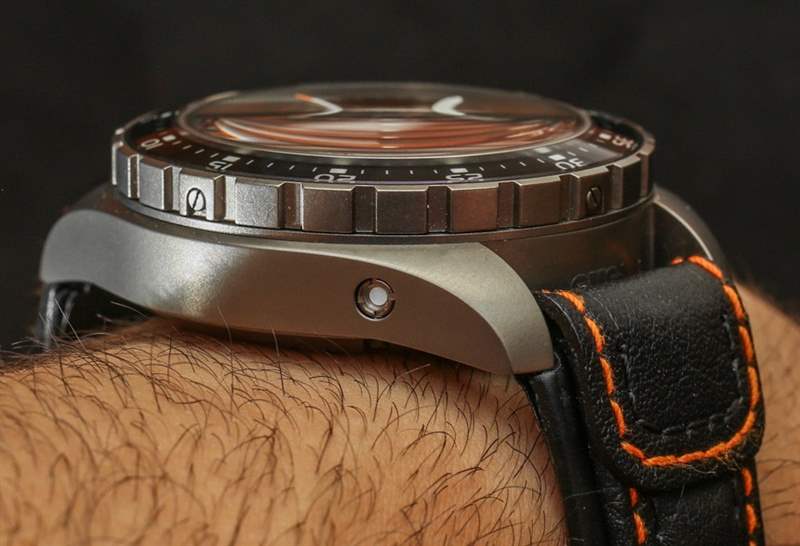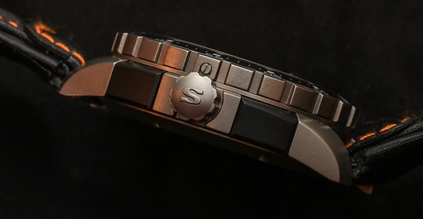 您還會注意到嵌入式計時按鈕設計。這是設計中比較有爭議的元素之一,但我碰巧喜歡它。每個人都喜歡齊平的計時碼表按鈕,但并不是每個人都喜歡 Sinn 決定將它們制成黑色。我不是 100% 知道他們這樣做的原因,但我的推測是,這是為了幫助提醒佩戴者他們在那里。這聽起來可能很愚蠢,但我認為好的工具設計意味著沒有操作按鈕或其他控件隱藏在視線之外,即使您一直使用它們也是如此。