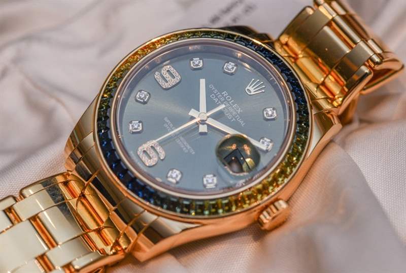 勞力士有意玩弄色彩,比如從藍(lán)色到黃色/綠色漸變或從紫色到藍(lán)色。這些顏色和寶石鑲嵌練習(xí)恰好標(biāo)志著新款 39 毫米寬版勞力士日志型珍珠大師腕表的首次亮相。雖然在西方,這些無(wú)疑代表了女性鐘表,但在東方肯定會(huì)有男性買(mǎi)家。