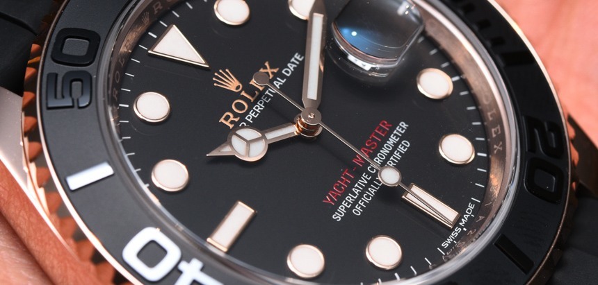 勞力士游艇名仕型表圈的啞光黑色和紋理在表盤上得到呼應——這在現代勞力士運動手表上也是非常罕見的。與我們習慣的略帶光澤的勞力士牡蠣運動手表相比,這使得外觀更酷,更清晰,更具侵略性。當然,116655 勞力士游艇名仕型的指針和時標采用 18k 永恒玫瑰金并經過拋光處理——這賦予了這款手表真正的“勞力士特色”。它也恰好看起來不像所有當前可用的勞力士蠔式運動手表 – 更不用說其他勞力士游艇名仕型時計了。僅出于這個原因,我認為鐘表愛好者會對勞力士游艇名仕型 116655 產生濃厚的興趣。