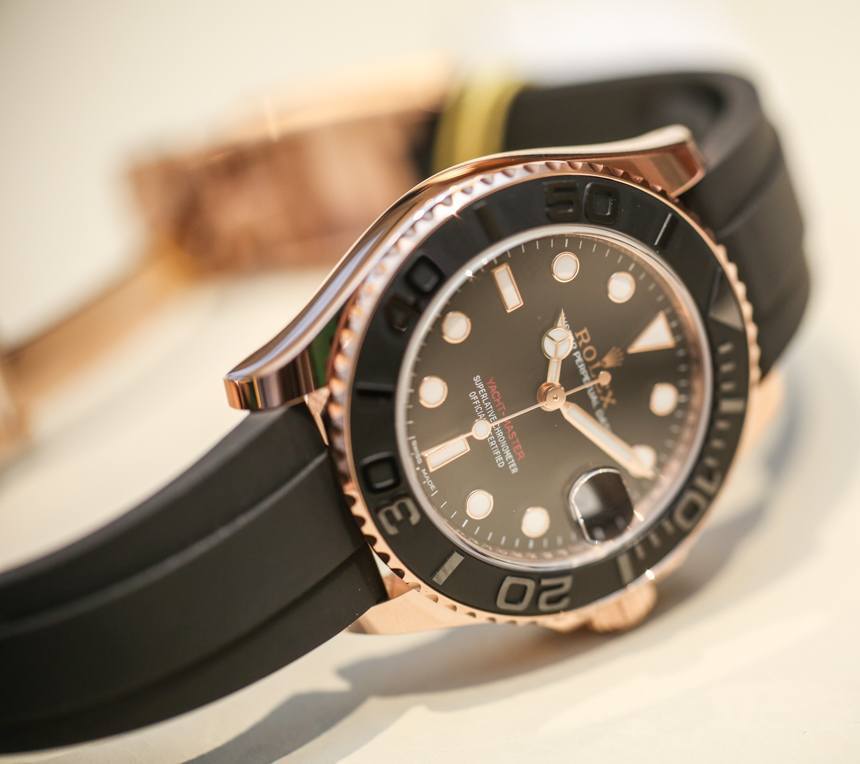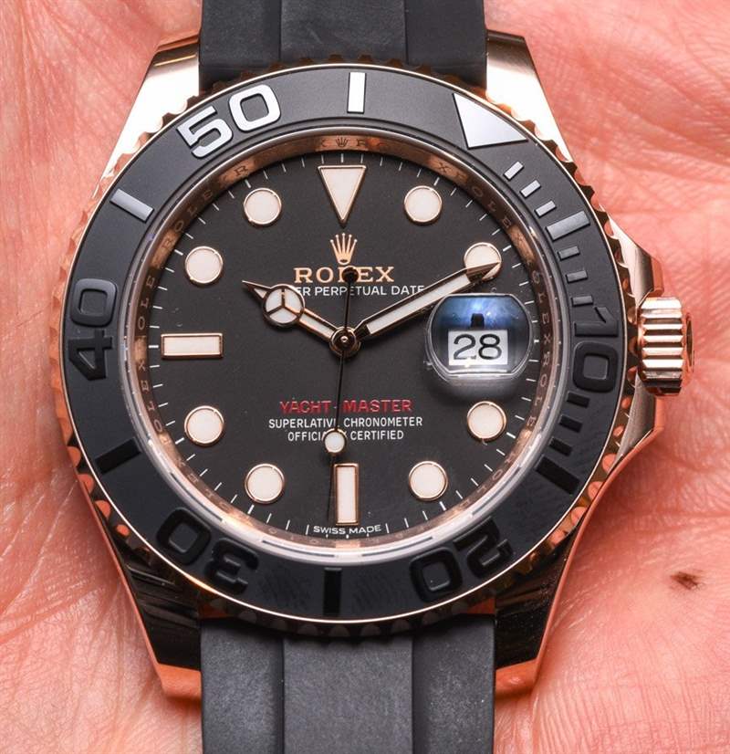 勞力士2015 年新款運動腕表是勞力士游艇名仕型的有趣版本,采用 18k 永恒玫瑰金表殼,Cerachrom 黑色陶瓷表圈搭配勞力士稱為 Oysterflex 的新款表帶。2015 Yacht-Master 實際上是兩款手表,每款都有細微但重要的區別。首先是 40 毫米寬的 Yacht-Master 116655,但您也應該知道有趣的 37 毫米寬 Yacht-Master 268655 版本。aBlogtoWatch 在這里推出了 2015 年勞力士游艇名仕型 116655,采用永恒玫瑰金和陶瓷材質。