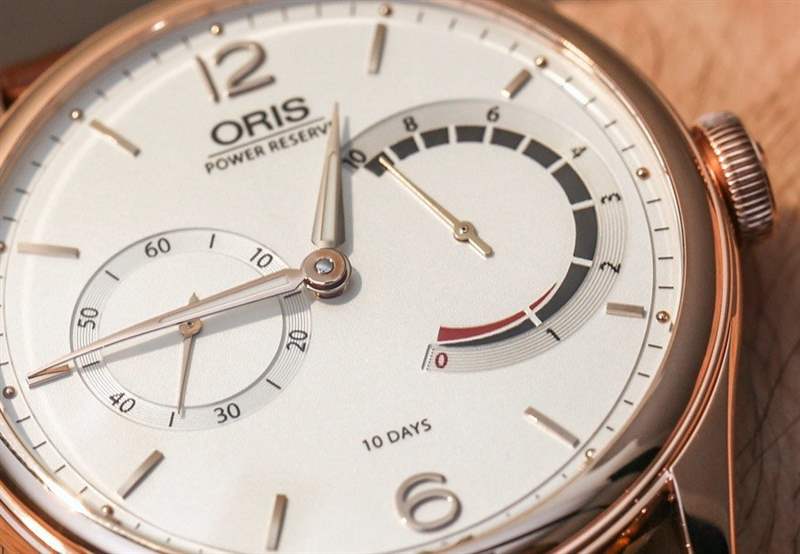 更有趣的是整整 240 小時或 10 天的動力儲存長度。這意味著 Oris Calibre 110 在以 21,600 bph (3Hz) 的頻率運行時,可以在繞組之間運行一周以上。表盤上的“10 天”小標簽提醒您這一事實。那個較低的標簽我不介意,但我確實認為 Oris 在他們的品牌標志下印刷“Power Reserve”并不是特別有用。這就像汽車公司在車身上放置無用的標簽和標志一樣。我記得我在成長過程中看到諸如“燃油噴射”和“全輪驅動”之類的愚蠢的東西出現在汽車的側面或后部。這會喚起品味和區別嗎?這對路上的其他汽車是否有某種有價值的用途?或者這只是某種奇怪的廣告,目的是幫助車主對他們的購買感覺更好,并且讓鄰居們意識到他們自己的汽車可能沒有這樣的功能。就個人而言,我不希望我的車上有那些東西。