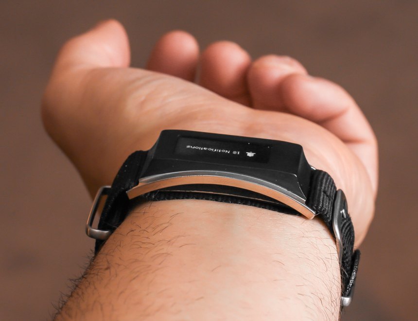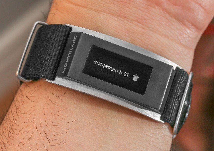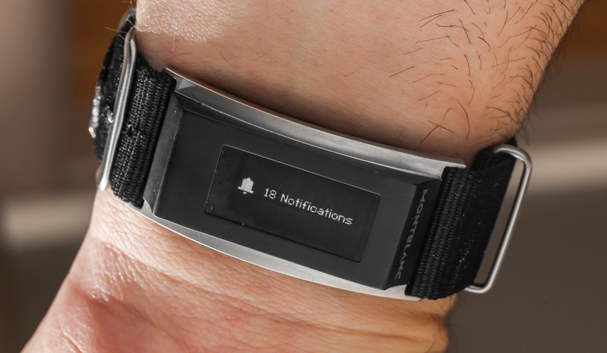 黑色鋼制單元是一個(gè)模塊,可以滑到位于手腕下方的特制堅(jiān)韌但非常薄的北約風(fēng)格表帶上,而傳統(tǒng)手表(本例中為萬寶龍時(shí)光行者)則位于手腕上方。該模塊有一個(gè)屏幕,包括內(nèi)置傳感器,并與您的手機(jī)通信。它提供了接收電話通知、跟蹤健身活動以及執(zhí)行其他越來越流行的標(biāo)準(zhǔn)“智能手表功能”的能力。此舉巧妙而簡單,單色 OLED 屏幕既不會讓人分心,也不會讓人覺得不受歡迎。