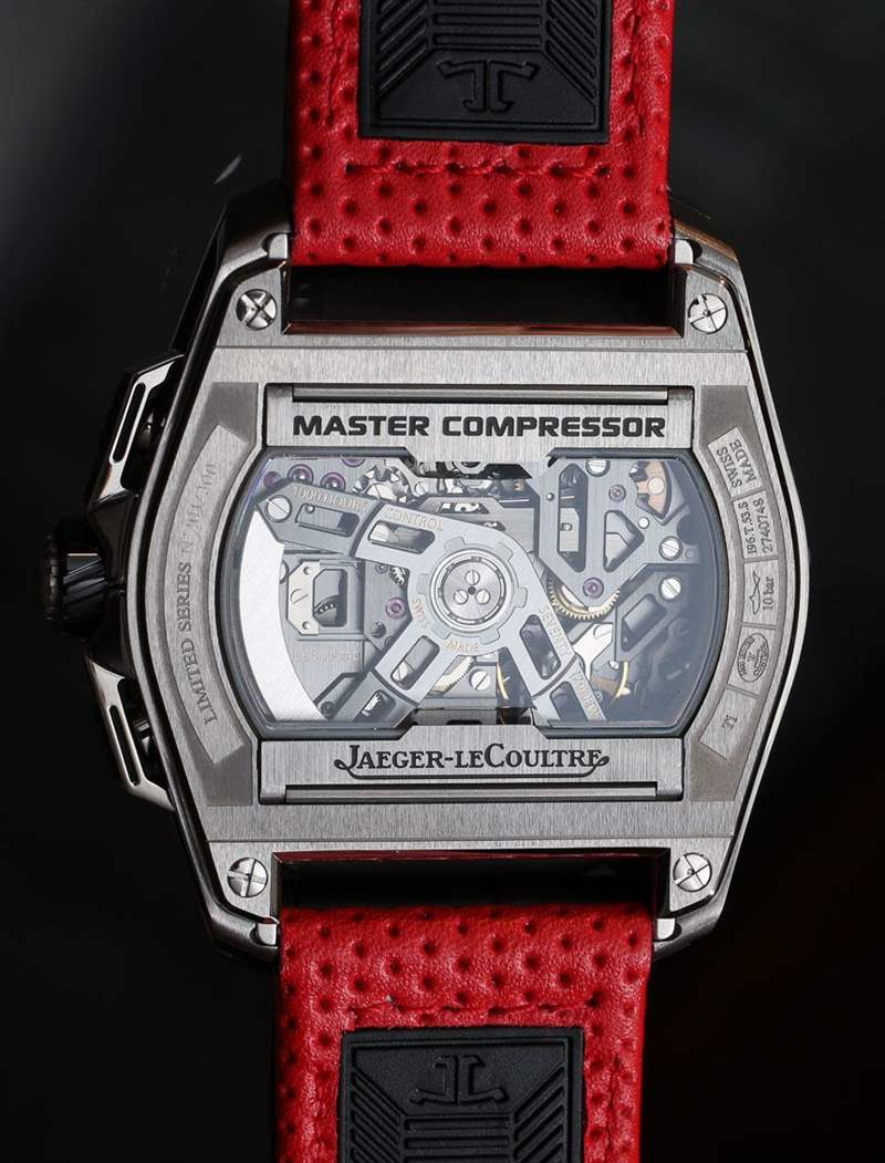 Extreme Lab 2 外殼高 16.5 毫米,肯定不薄,但它本來可以厚得多。積家 (Jaeger-LeCoultre) 設法擠出 100 米的防水性能,即使底蓋上的非圓形藍寶石水晶顯示了機芯的視圖——以及所有按鈕。表殼周圍是一個按鈕式表冠(它像按鈕一樣推入以選擇功能而不是被拉出),兩個計時碼表按鈕和一個位于表殼左側的滑動桿。這導致了一些值得注意的有趣的功能選項。