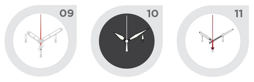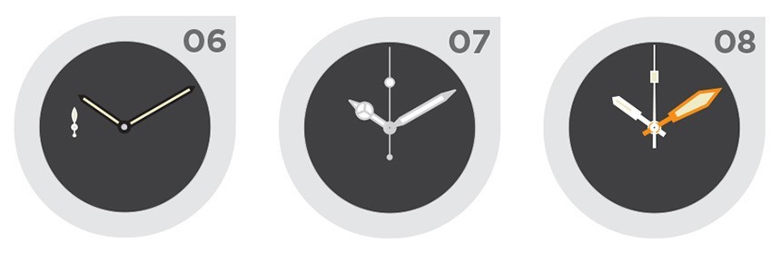 我們只看到這些您看不到的每個表盤上的指針,我們注意到了什么?在大多數情況下,手的大小和比例都合適。這意味著它們在表盤上盡可能地延伸,分針與時針不同或易于識別。因此,重要的不僅僅是手,還有它們之間的相對設計。