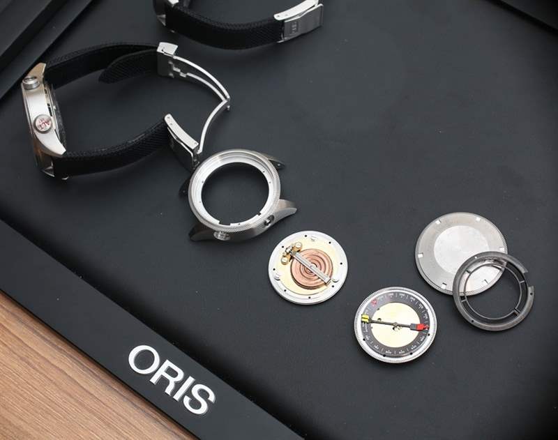 那么 Oris Big Crown ProPilot Altimeter 腕表是如何工作的呢?實(shí)際上,這非常簡(jiǎn)單。手表的計(jì)時(shí)部分是 Oris 口徑 733,這是一個(gè)基本的瑞士 Sellita SW200 自動(dòng)機(jī)芯,位于模塊頂部的表殼中間。機(jī)芯的柄軸延伸至 2 點(diǎn)鐘位置的表冠,可讓您上弦或調(diào)整 ProPilot 高度計(jì)的計(jì)時(shí)部分。