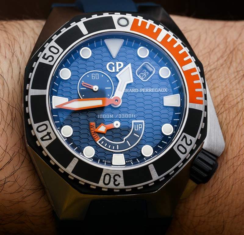 不得不說,蜂窩狀表盤略帶金屬感的藍色真的很可愛,與表盤的搭配也很搭。我一直很喜歡 Girard-Perregaux Sea Hawk 表盤的深度和細(xì)節(jié),對我來說,這是迄今為止最好的一款。為什么?好吧,部分原因在于手表看起來不錯,但也感覺像航海儀器。表盤是高端的,但真的很清晰,我發(fā)現(xiàn)只有十幾款豪華潛水表可以做到這一點。很少有芝柏表 Sea Hawk 擁有如此多的現(xiàn)代細(xì)節(jié),相比之下,它們是經(jīng)典或傳統(tǒng)的。廣告留言廣告信息結(jié)束