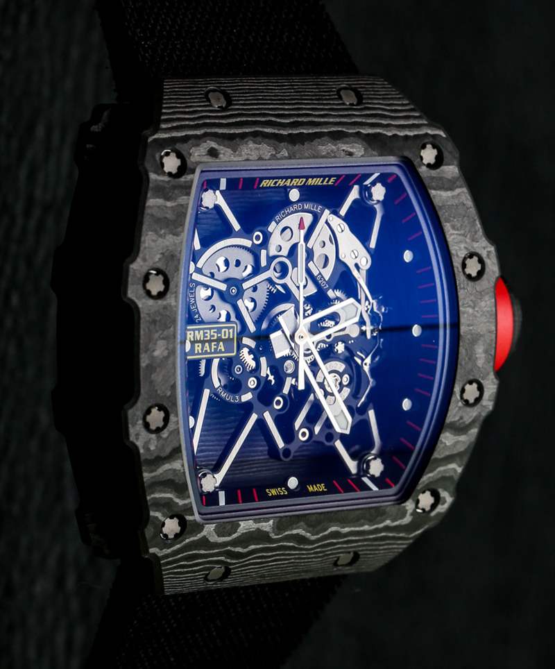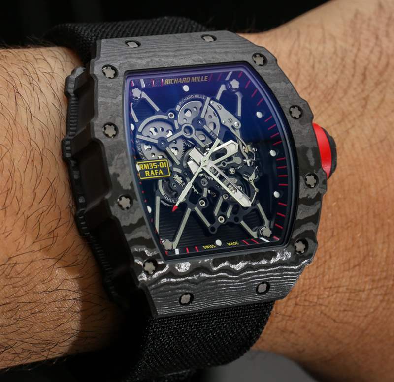 2014 年,理查德米勒 (?Richard Mille?) 發布了新系列拉斐爾納達爾 (Rafael Nadal) 時計的另一款型號,名為 RM 35-01。早在 2010 年,Richard Mille?將一款基于陀飛輪的時計戴在西班牙網球冠軍的手腕上,讓他在參加這項運動時佩戴,不僅震驚了鐘表行業,也震驚了全世界。納達爾不僅佩戴價值超過 500,000 美元的限量版 RM027 手表贏得了獎杯,而且在此過程中也丟失/損壞了一些獎杯。