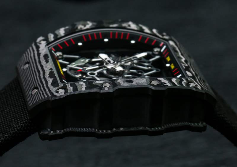 RM 35-01 不是專注于機芯創新,而是 2014 年幾款新手表的一部分,這些手表展示了 Richard Mille 用于表殼的新材料。他們稱之為NTPT 碳,我們于 2013 年底在這里首次亮相。“NTPT”代表生產它的公司;那就是 North Thin Ply Technology,它實際上位于瑞士。該材料是一種特殊的分層碳復合材料,從技術上講是一種高科技層壓板。它使用多層,已用于一系列工業和體育用途,例如美洲杯帆船。如果以正確的方式生產,它恰好具有看起來像大馬士革鋼的獨特品質。廣告留言廣告信息結束