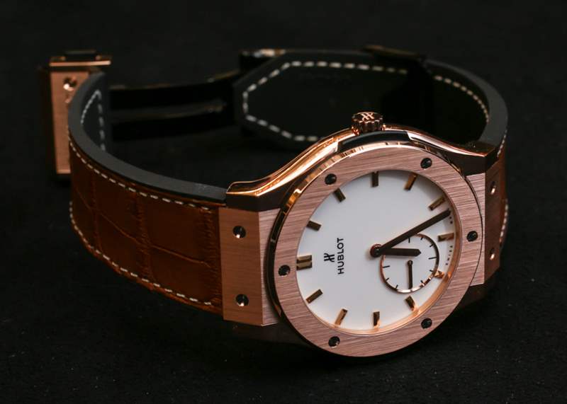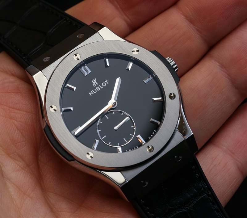 Classic Fusion 系列并不新鮮,但 Hublot 一直在嘗試并完善它。這個系列是我最喜歡的系列之一,感覺就像是“真正的”Hublot 正裝手表。42 毫米寬,既不太小也不太大。Hublot 提供 18k 王金(類似于紅金)或鈦金屬表殼,在設計上是非常經典的 Hublot。這種情況與您希望 Hublot 一樣“超薄”。說真的,如果它是 Piaget Altiplano-thin,它看起來會很傻。機芯厚度僅為 2.90 毫米,表殼厚度可能是它的兩倍。它在手腕上感覺纖細而且非常舒適,比 45 毫米寬的 Classic Fusion 版本更適合大多數手腕。