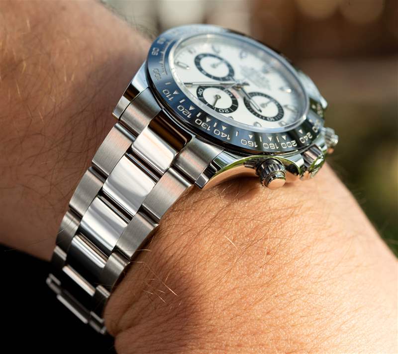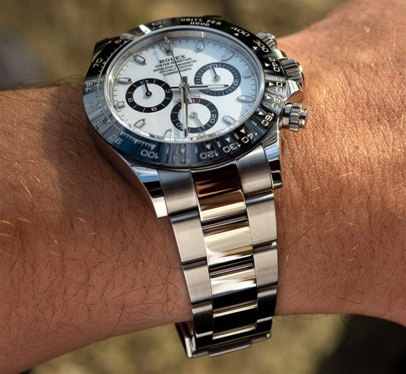 勞力士代托納 (Rolex Daytona) 比大多數(shù)其他鋼手鏈計(jì)時(shí)手表更舒適。它尚不完美——請(qǐng)繼續(xù)關(guān)注以了解它如何在下面的“較差”部分做得更好——但它不需要完美就可以勝過(guò)幾乎所有其他鋼制計(jì)時(shí)碼表。為何如此?首先,大多數(shù)鋼制計(jì)時(shí)碼表的門(mén)檻并沒(méi)有設(shè)置得很高;它們可能又重又厚又笨拙,通常搭配普通的表帶或表鏈,這些表帶或表鏈的設(shè)計(jì)并不適合手表的體積。勞力士代托納 (Rolex Daytona) 是當(dāng)今生產(chǎn)的最薄的自動(dòng)上鏈計(jì)時(shí)手表之一。它的厚度僅為 12 毫米,比大多數(shù)潛水表都薄(勞力士潛航者型的厚度為 13 毫米),更不用說(shuō)計(jì)時(shí)碼表了。這有助于以各種方式提供舒適感:低調(diào)有助于最大程度地減少晃動(dòng),防止手表一直卡在袖子和障礙物上,而且,作為獎(jiǎng)勵(lì),它也增加了明顯更精致的美感。其次,116500LN 配備三鏈蠔式表鏈,寬度、重量和集成度都恰到好處,可以舒適地支撐表頭。第三,手鐲和表扣都沒(méi)有任何鋒利的邊緣——甚至是表耳的底面。廣告留言廣告信息結(jié)束