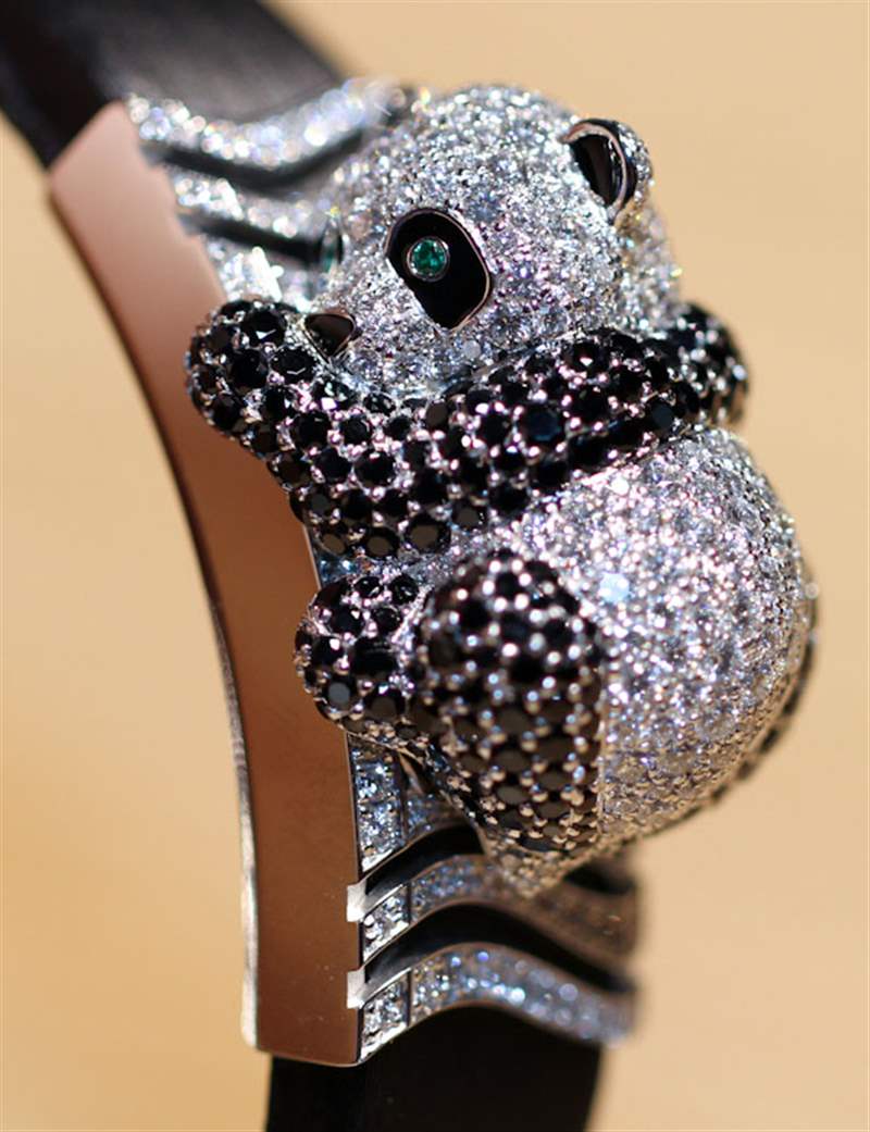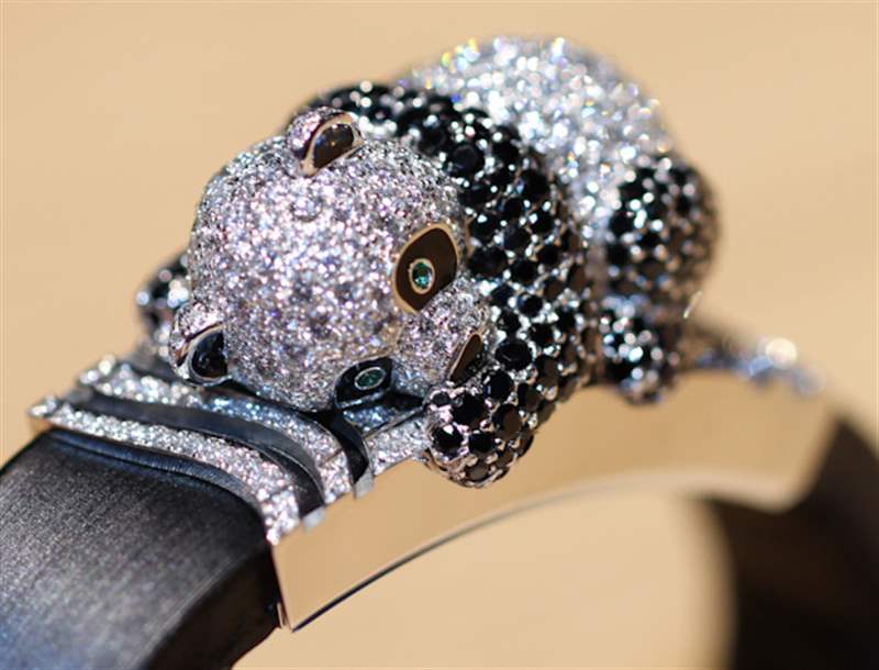 這款來自卡地亞的可愛女士手表?被稱為 Secret Panda。我并不經(jīng)常使用“可愛”這個(gè)詞來形容鐘表,但這一款確實(shí)如此。全部采用 18k 白金鑲嵌鉆石、黑色藍(lán)寶石和兩顆祖母綠作為眼睛,這只小熊貓簡直就是在晃動手表。將小駝峰熊貓向下滑動,即可顯示時(shí)間。您甚至可以快速來回移動熊貓,讓它看起來好像在快速駝背。我喜歡這樣的東西。廣告留言廣告信息結(jié)束