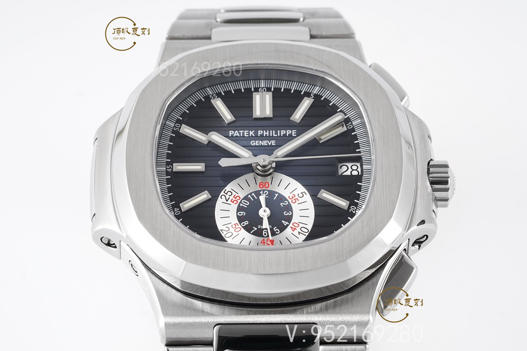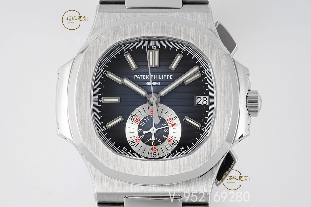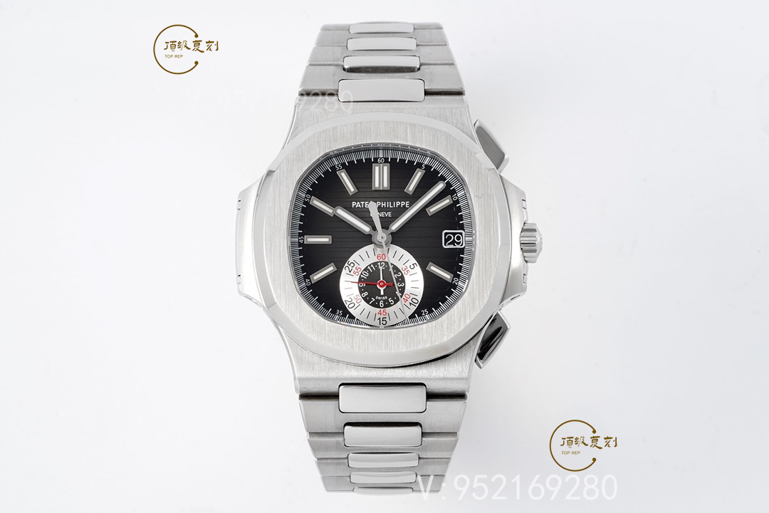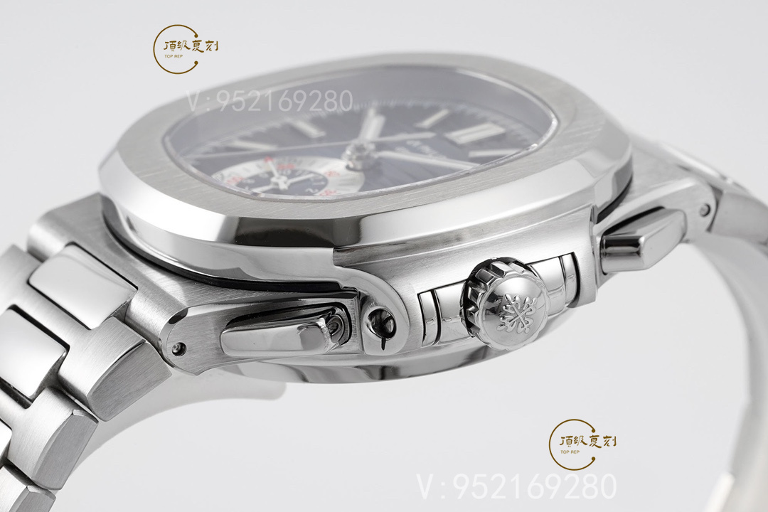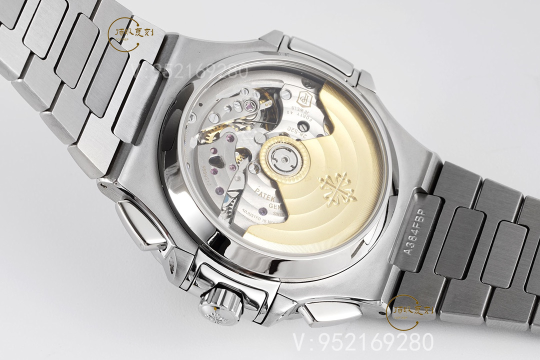 表王百達翡麗的計時表可以這么說,基本做不出功能一樣的機芯,這里簡單介紹一下這款原裝表的各種:5980的厚度為12.6毫米,比其他所有Nautilus系列的都更加厚重。5980/1A使用的是百達翡麗自產(chǎn)的新款28520機芯,該機芯采用21K金中央自動盤單向上弦,寶璣擺輪游絲和四臂Gyromax平衡機,每小時擺次為28,800。動力儲存為45小時,計時碼表按鈕和大部分一樣,2點位的是開始和停止,4點位的是手動復位和飛返。可以說它是市場上最精致運動計時碼表之一。