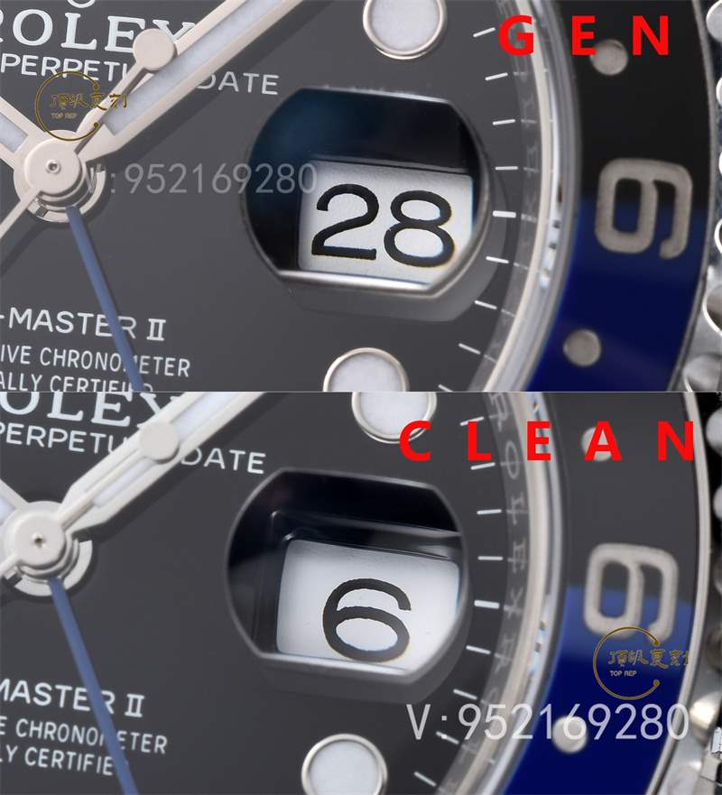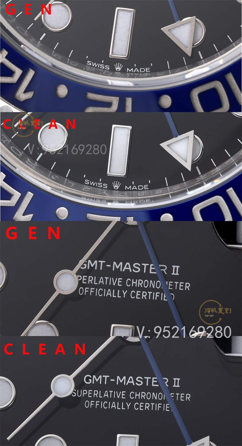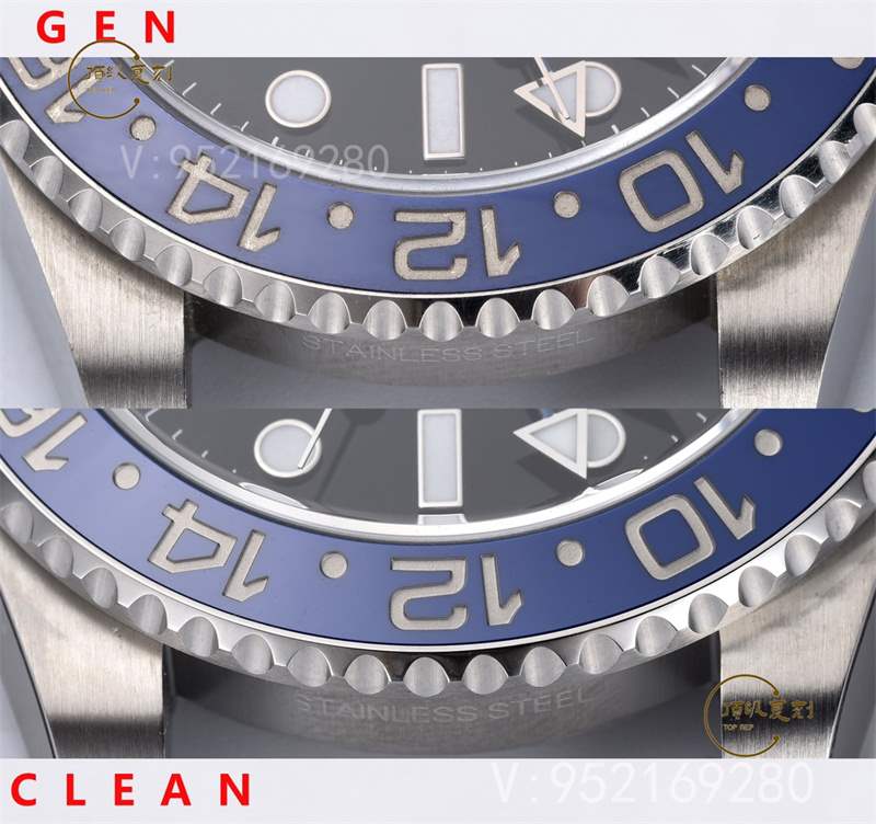 工廠介紹:Clean廠國米對比 在這兒之前已經(jīng)有部分商家發(fā)過gmt的對比,但是這次是clean出dd3285以后,嚴格意義上說是v2版,相對于第一版 他們修正了表盤字體 以及表圈轉(zhuǎn)動手感,以及表帶與表殼鏈接的部分/凸起 陶瓷圈部分 黑色 藍色已經(jīng)做的非常完美,包括兩色相交的地方 。 Clean在22年10月,就將clean做的所有勞力士系列 都更新了 表扣上的皇冠。 主要特點在于 這個皇冠logo 表面做到非常平整的同時。皇冠的爪子與爪子中間的部分,也做到了拋光效果。這個是非常難得的, 因為這個部分是無法通過機器去拋光的,如果使用拋光機,底部拋亮的同時。皇冠的平面會失去平整度,將會變的非常圓潤。 Clean 國米對比 在這兒之前已經(jīng)有部分商家發(fā)過gmt的對比,但是這次是clean出dd3285以后,嚴格意義上說是v2版,相對于第一版 他們修正了表盤字體 以及表圈轉(zhuǎn)動手感,以及表帶與表殼鏈接的部分/凸起 陶瓷圈部分 黑色 藍色已經(jīng)做的非常完美,包括兩色相交的地方 。