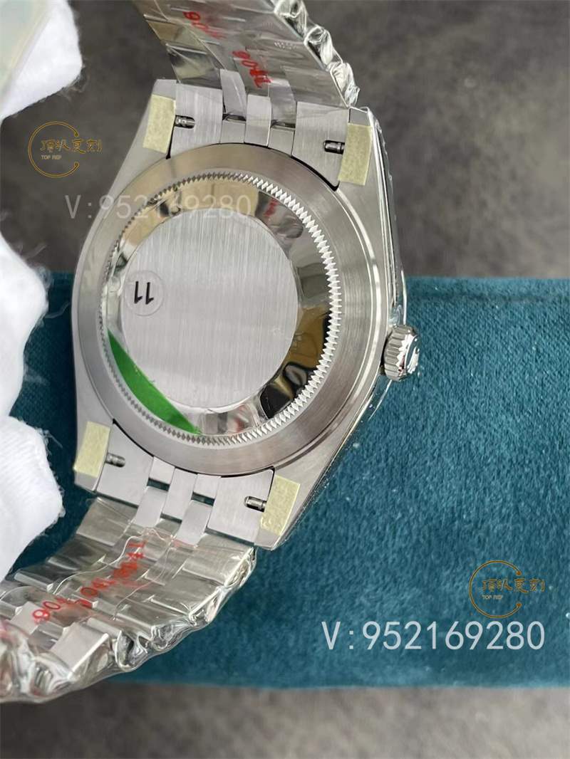 表殼的通過頂尖數控加工技術細致拋光,質量極為細致。在打磨加工方面,VS廠基本上不會有什么問題!值得一提的是,狗牙圈應當聚焦在外圈的細節方面。日志的特點是外圈設計,是勞力士永恒的經典代表之一,具有很強的層次感。這一外圈并不像綠水鬼那般粗放型,隨處突顯精美自然之美。大部分喜歡日志的朋友都喜歡這個狗牙圈!為了盡可能避免與官方原裝原材料的差異,VS廠在拋光過程當中盡量接近正品層次感,甚至還加入了電鍍白金,使得光澤方面完全同步原裝效果。