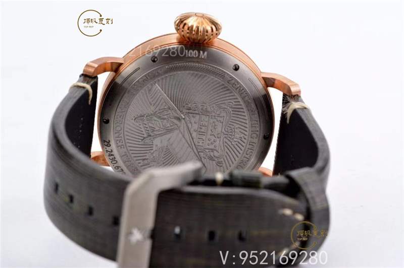 底蓋:鐫刻真力時(shí)航空儀器標(biāo)志,立體感很不錯(cuò)。把頭是真力時(shí)標(biāo)志性的洋蔥大把頭,形態(tài)上與真品一致。機(jī)芯采用亞太版2824雕花打磨機(jī)芯,性能穩(wěn)定性良好。