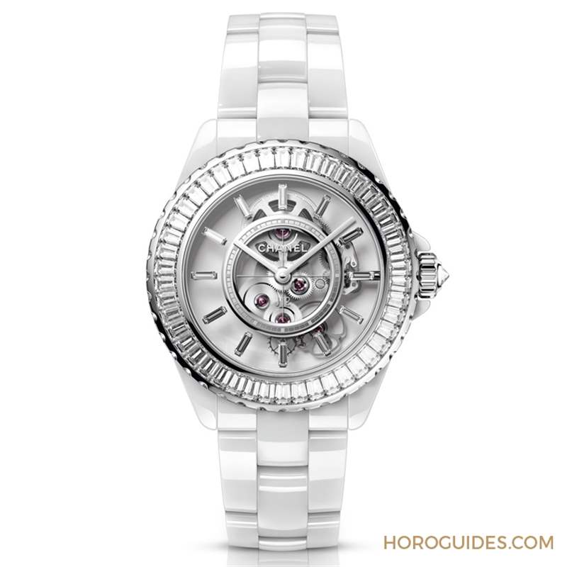 2021年新作J12 Caliber 3.1白色腕表是第二只搭載Caliber 3.1機芯的腕表,「此作品是CHANEL自制機芯Caliber 3.1與白色抗磨精密陶瓷首度結合,細致的機芯呈現猶如高級訂制服般的效果,其表橋與齒輪結構展現猶如齒輪繡制而成的蕾絲花紋,因藍寶石水晶之故,保留了Caliber 3.1機芯的齒輪,表橋則仿佛巧妙隱藏消失,呼應品牌設計理念,只保留必要元素,其余舍除」CHANEL腕表創意工作室總監Arnuad Chastaingt解釋。