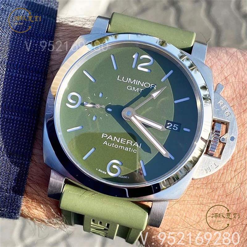VS廠最帥44MM軍綠色腕表來了!PAM1056官網(wǎng)同步限量發(fā)售~金針與綠盤撞色,讓獨(dú)一無二的你才“沛”這份沉著而自信!預(yù)定贈(zèng)送官網(wǎng)軍綠膠帶一副~此次VS廠出品01056整體做工優(yōu)良,我認(rèn)為此款腕表的難度在于這個(gè)墨綠色,不過在對(duì)比正品之后發(fā)現(xiàn)其實(shí)兩者顏色基本一樣,再就是限量版,全球可能也找不到幾個(gè)正品來撞表,隨便戴吧。
