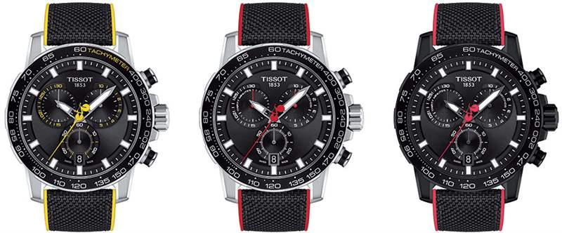 天梭超級運動Chrono Tour de France,Giro d’ItaliaVuelta都佩戴在紡織表帶上,由于快速連接系統,可以輕松更換。每枚腕表均以特別禮品套裝送出,內附第二條表帶。